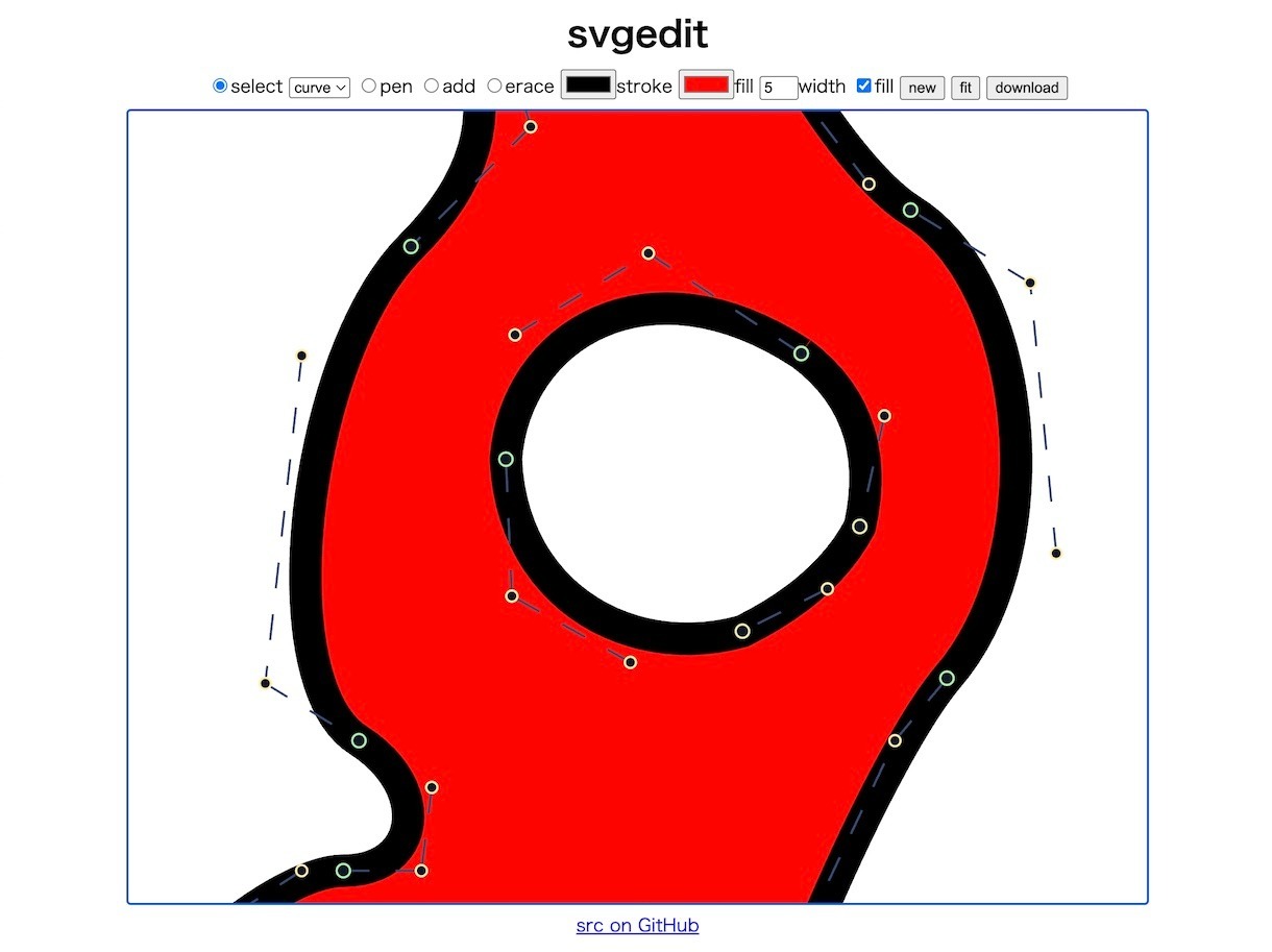 直線と曲線によって作られているベクター形式、SVGを編集するツール「svgedit」を作り始めました。まだできることは曲線を描く、調整する、点を削除する、SVGファイルとしてダウンロードするのみ。まずはフォントの修正ができる程度を目指します!