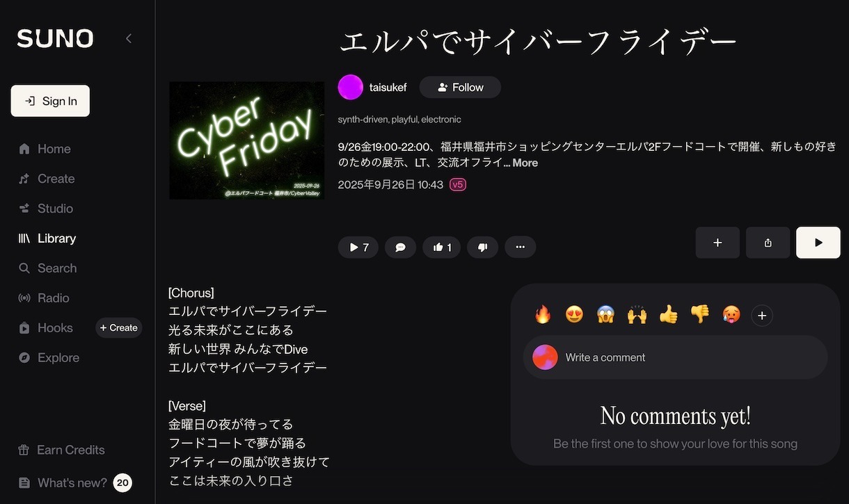 SUNOにより自然な作曲を可能とするバージョン5を使って、記念曲!