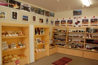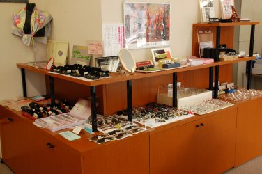 鯖江で有名な河和田漆器、鯖江のお酒"梵"、お菓子などいろいろ名産がおいてある