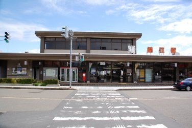 駅から出た風景です正面の道路、右側に見えるのあすかレンターには、観光マップも置いてあります左に行くと、鯖江観光案内所があります