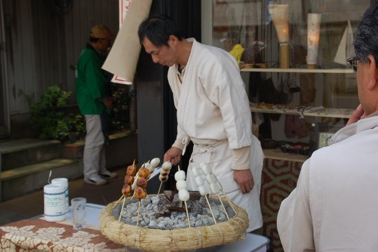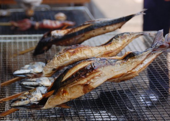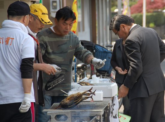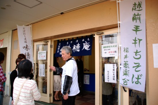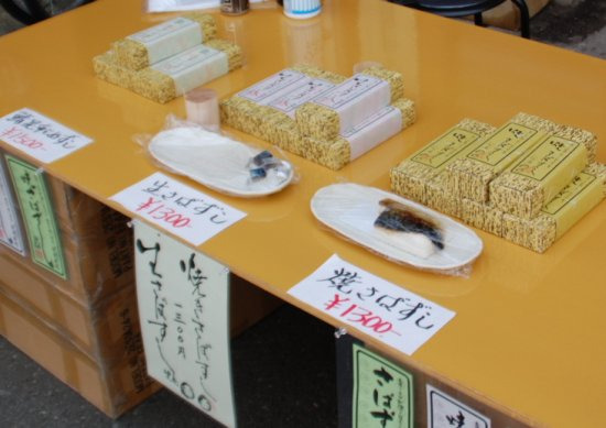 お魚屋さんも外で営業、鯖江市長も来ていた
