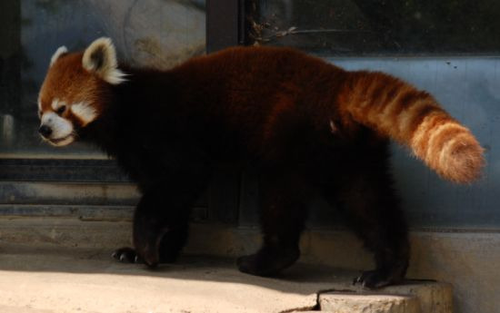 西山公園内、西山動物園といえばレッサーパンダこの日外を歩いていたレッサーパンダは、なんだか険しい顔