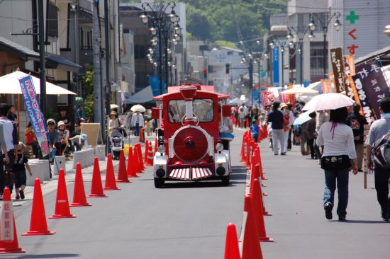 西山公園と鯖江商店街とは、歩くこともできますが、ロードトレインもいいでしょう
