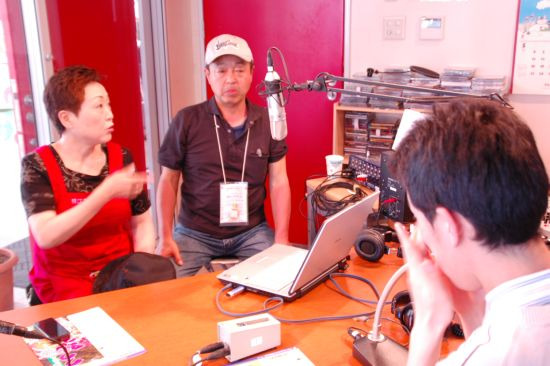 たんなんFMのラジオ番組高専ライブに出演中のにぎわい横丁の総支配人の方(右)と、多数出店していたおかみさん会の元会長さん(左)