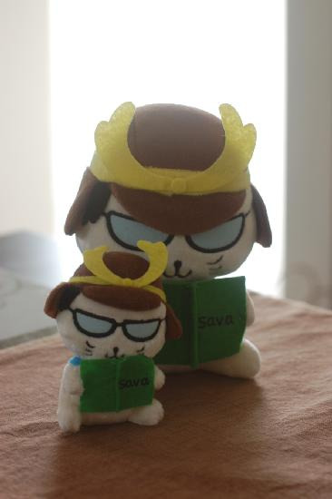 大きさはこの2種類、このぬいぐるみ共に1体では自立しないので、お互い支え合っています彦根のひこにゃんを生み出した彦根らぼらとりぃ社の正式ライセンス品「ひこにゃんとさばにゃん - めがね会館IT社長」