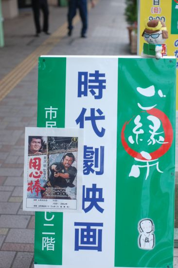 らてんぽでは、白黒映画の上映会とさばにゃん