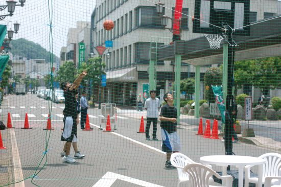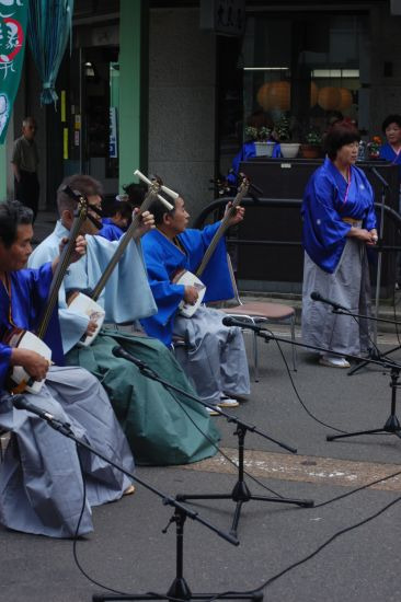 歩行者天国となった本町商店街での津軽三味線の演奏会