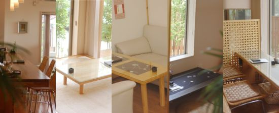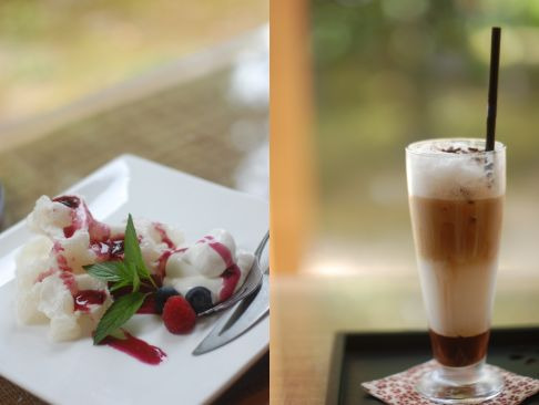 カウンター、座敷、ソファー、お庭ビューといろんな席で楽しめる今日は一番右の庭を見ながらのおやつ