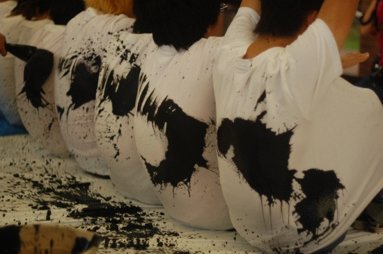 福井では達者でござるでお馴染みの俵さん、35人の背中に書く