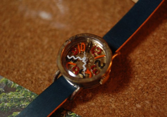 お土産の文字盤をあしらった真鍮板のアクセサリー