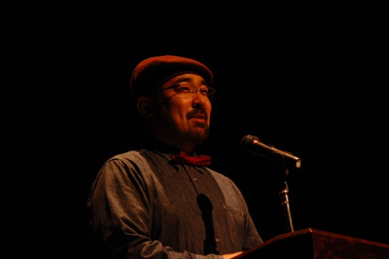 くまひげ先生「パソコンで作曲、シンガーソングライター」(写真は、開会挨拶のもの)