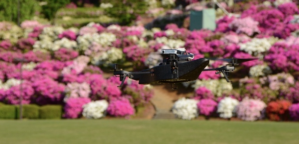 こんな感じのお手軽UAV(無人航空機を意味する英語 "Unmanned Aerial Vehicle")、AR.Droneで撮影。