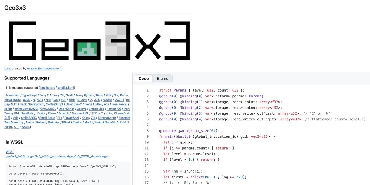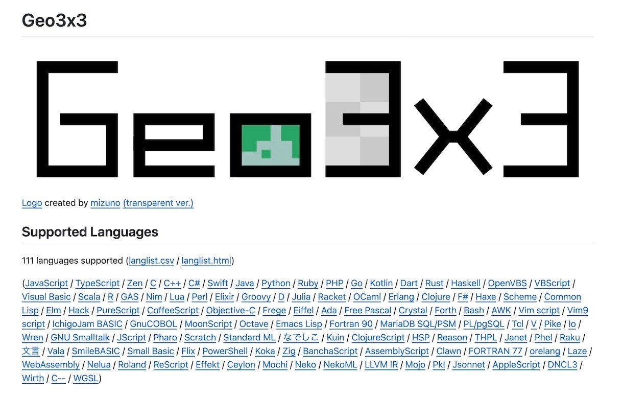 「Geo3x3 - 111プログラミング言語サポート!」 src on GitHub