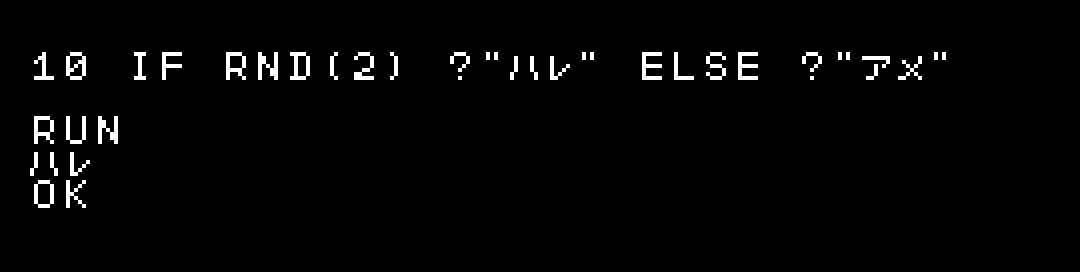 10 IF RND(2) ?"ハレ" ELSE ?"アメ"
