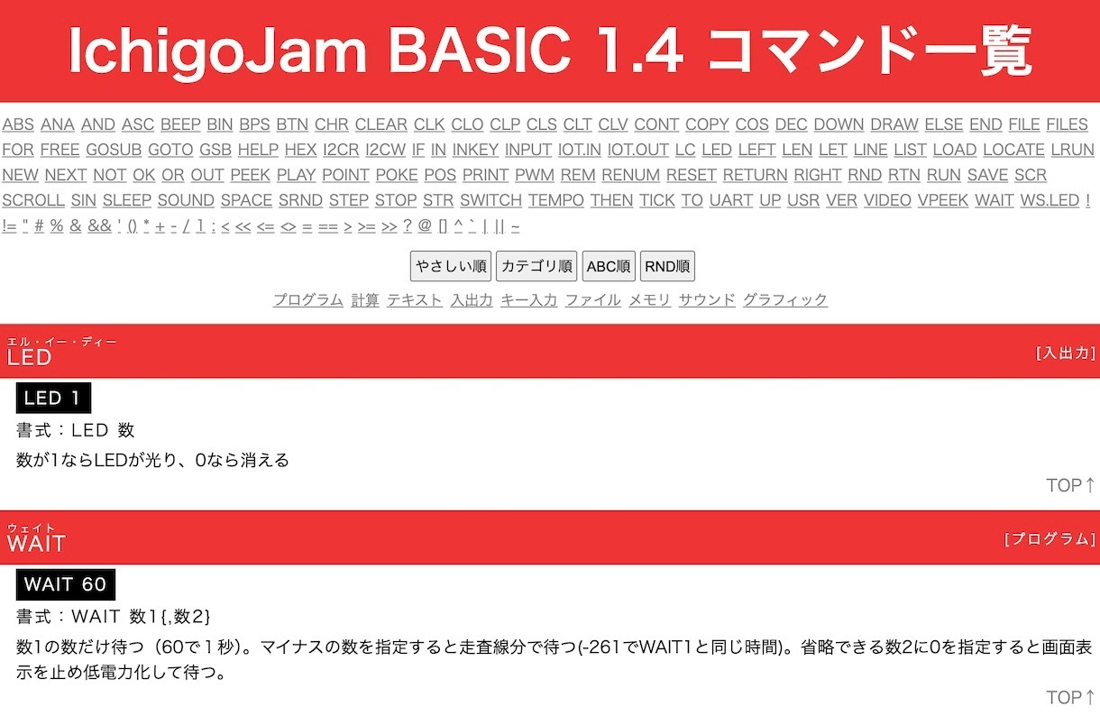「IchigoJam BASIC 1.4 コマンド一覧」