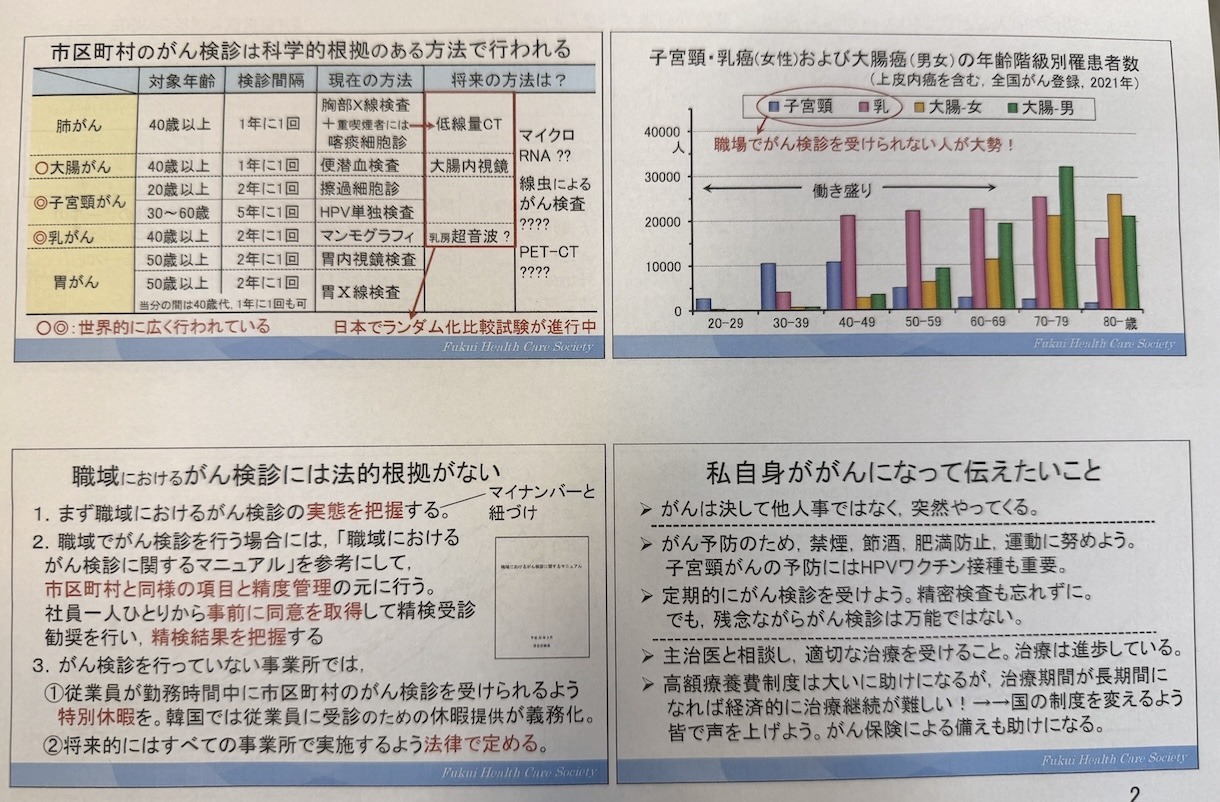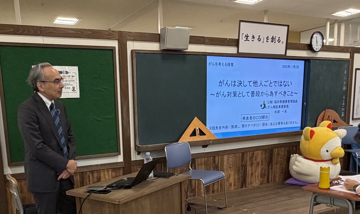 アフラック企画、福井県健康管理協会 松田一夫さんによる講演会「がんは決して他人ごとではない〜がん対策として普段から為すべきこと〜」
