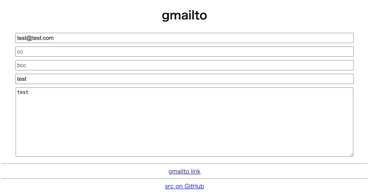 Gmailへのメール送信リンク生成アプリ、gmailto