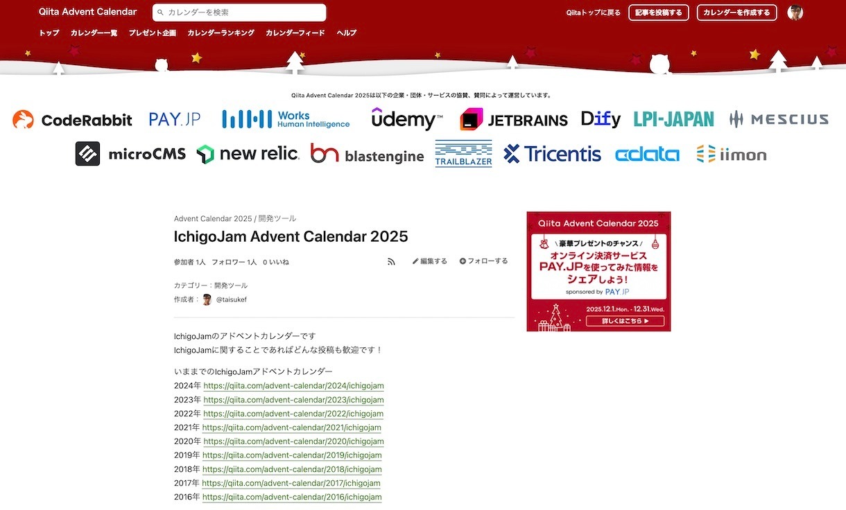 - 2025年 https://qiita.com/advent-calendar/2025/ichigojam
