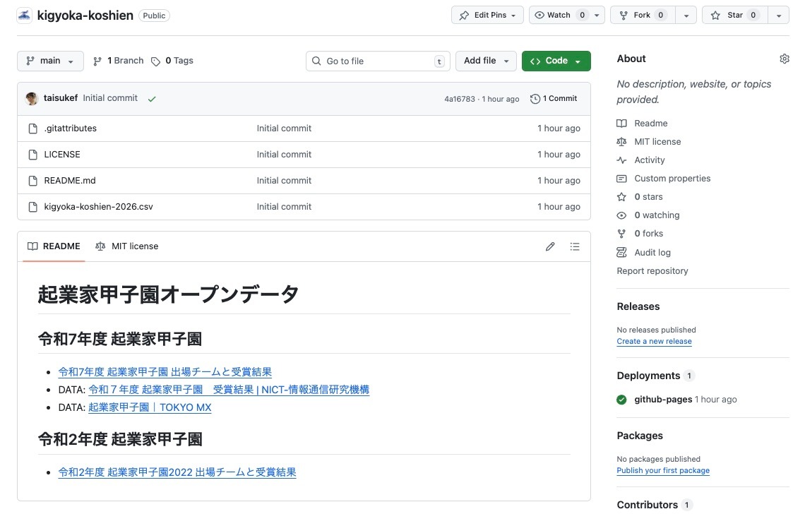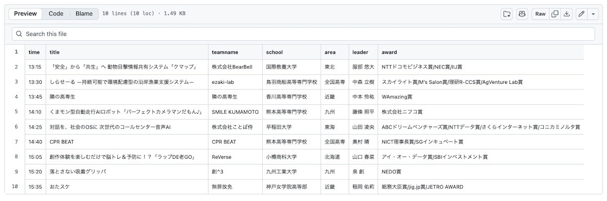 起業家甲子園オープデータとして過去分もまとめられる用リポジトリ作成。