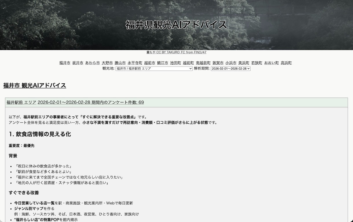 「福井県観光AIアドバイス」
