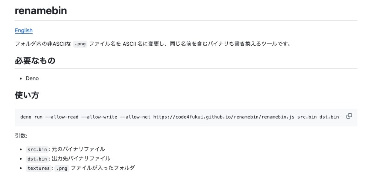 日英のREADMEはソースコードからOpenAIのcodexで生成したもの。そこそこ良いのでそのまま採用!
