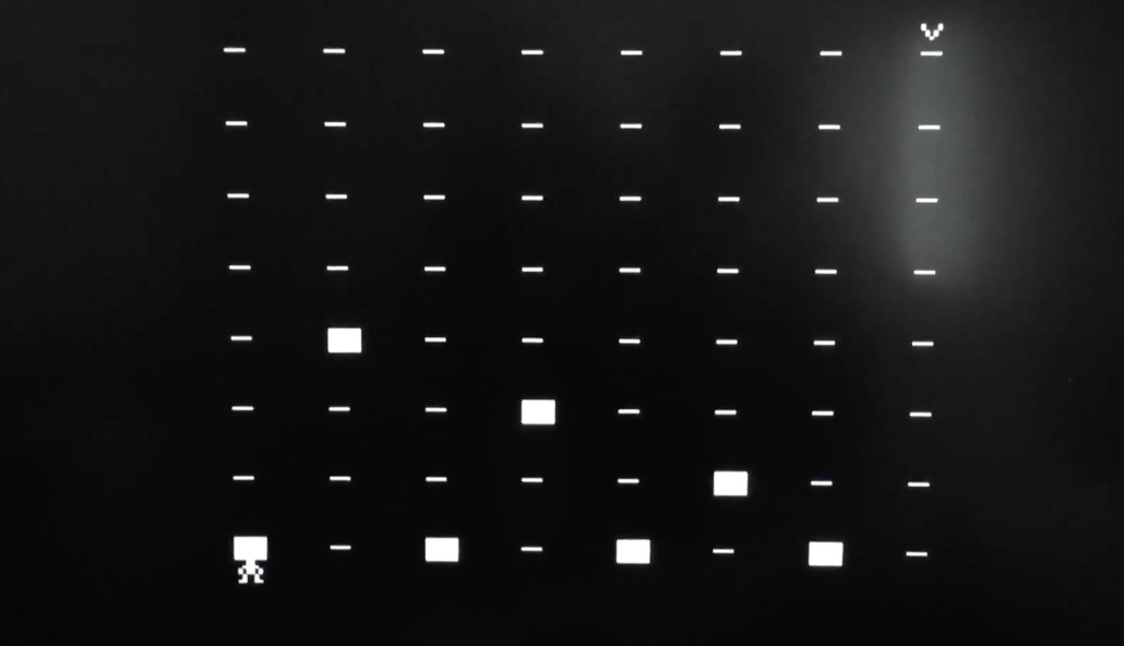 カーソルキーで"v"を動かし、スペースで音を置くと、下のビットマンが来た時においた場所に応じた音がなります。
