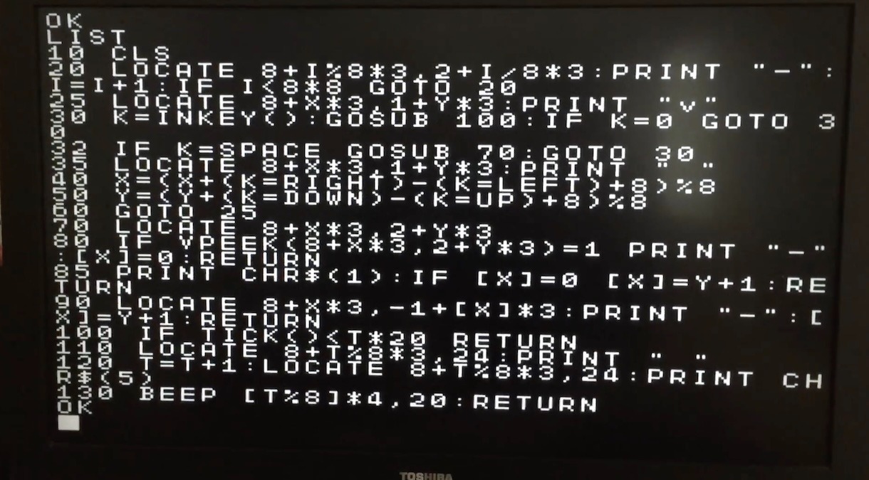 プログラムはこんな感じです。配列とGOSUBも使ったBASIC中級者向けサンプル。
