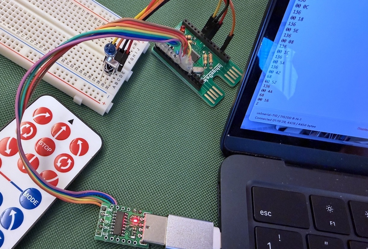 比較的ゆっくり通信される赤外線リモコンですが、普通のパソコンだけでは解析は困難。100円、たった48MHzのコンピューター(マイコン)ですが、フルに使える良さがあります。