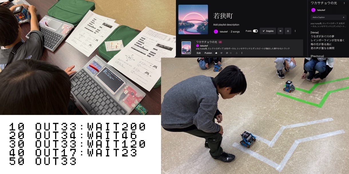 アイスブレイク、若狭町と言えばで挙げてもらったキーワード「うなぎ、レイボーライン、梅、三十三間山」に、K-POPスタイルで作った2曲。IchigoJamの100円のコンピューターでも計算力は、1秒間に5000万回。すごい計算力と記憶力がAIを支えてます。