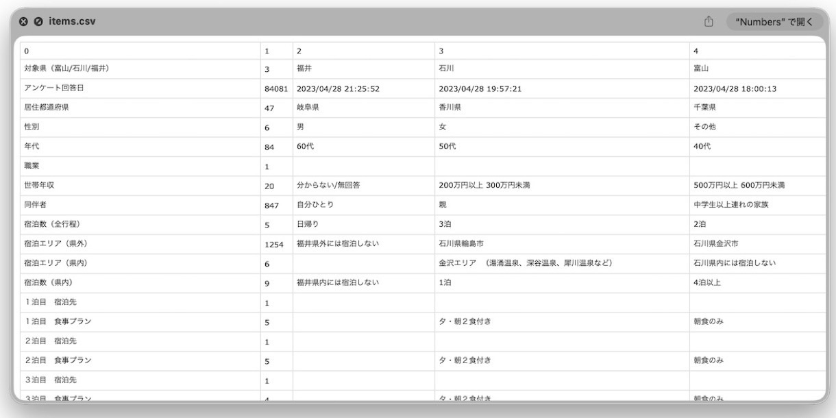- 北陸三県揃った! 観光アンケートオープンデータの項目チェック