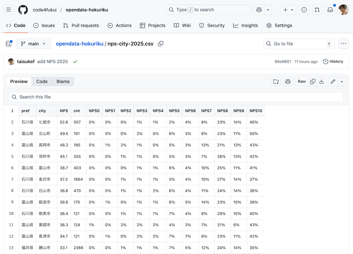 「opendata-hokuriku/nps-city-2025.csv at main · code4fukui/opendata-hokuriku」