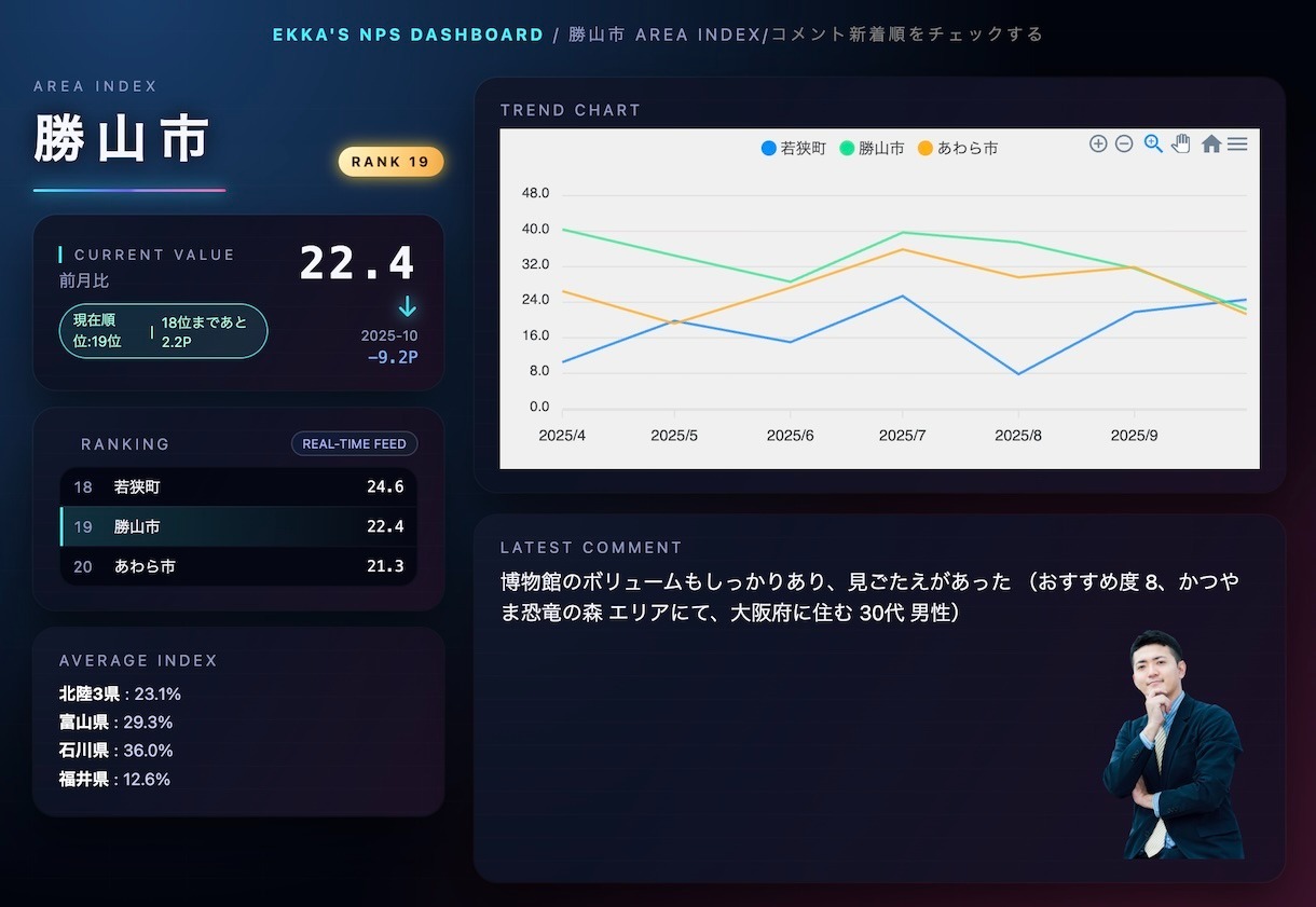 北陸三県から市町を選択、NPSスコアとライバルとの差を検証しましょう!