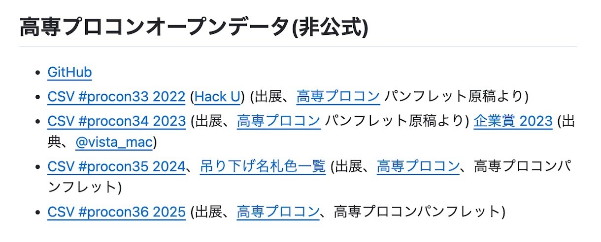 「高専プロコンオープンデータ(非公式) / 高専オープンデータ」