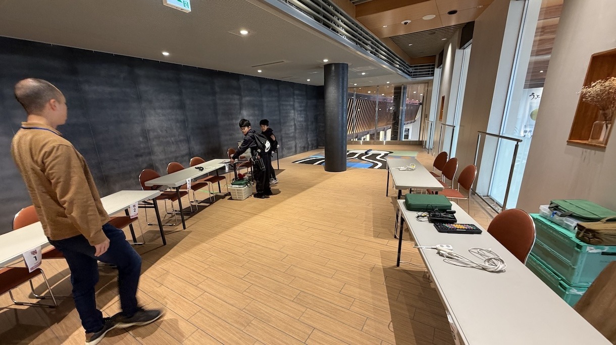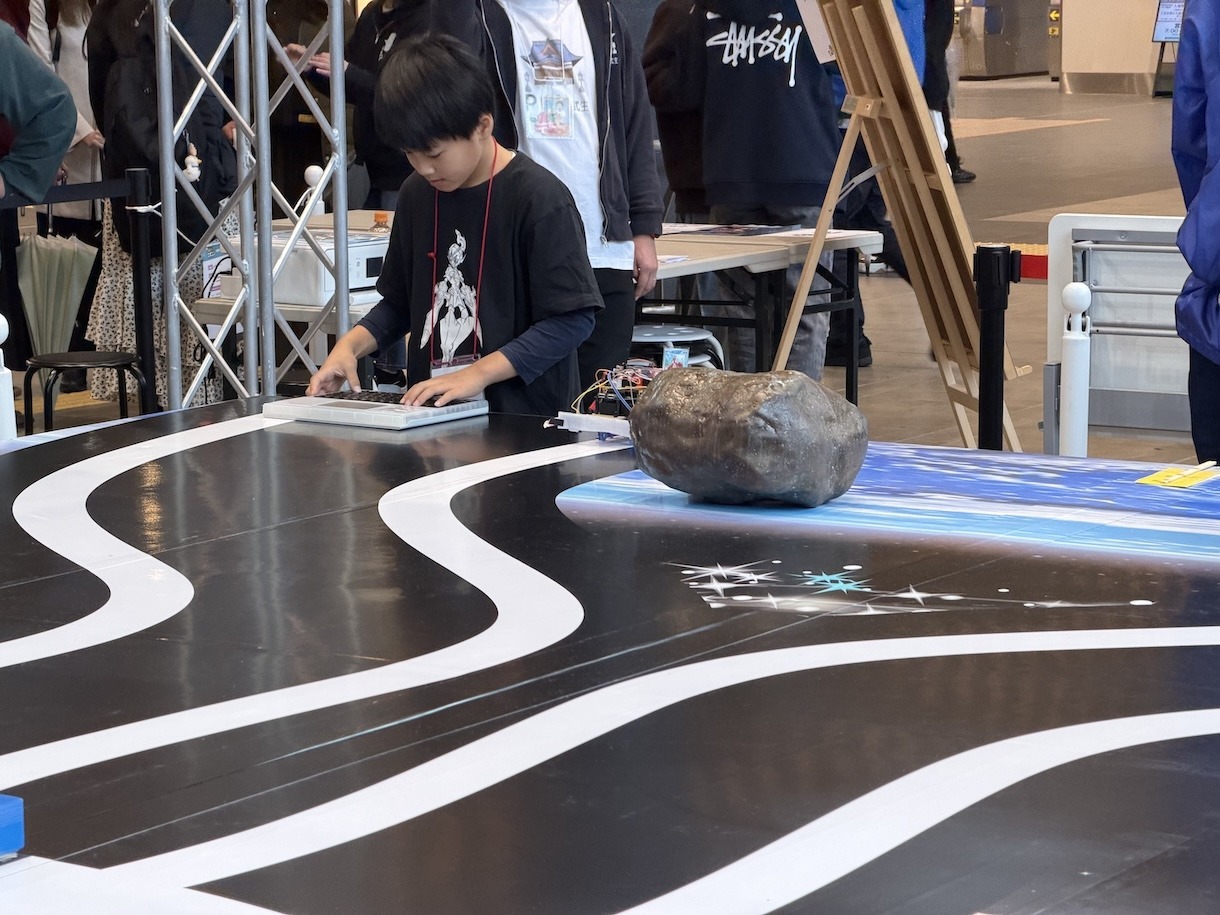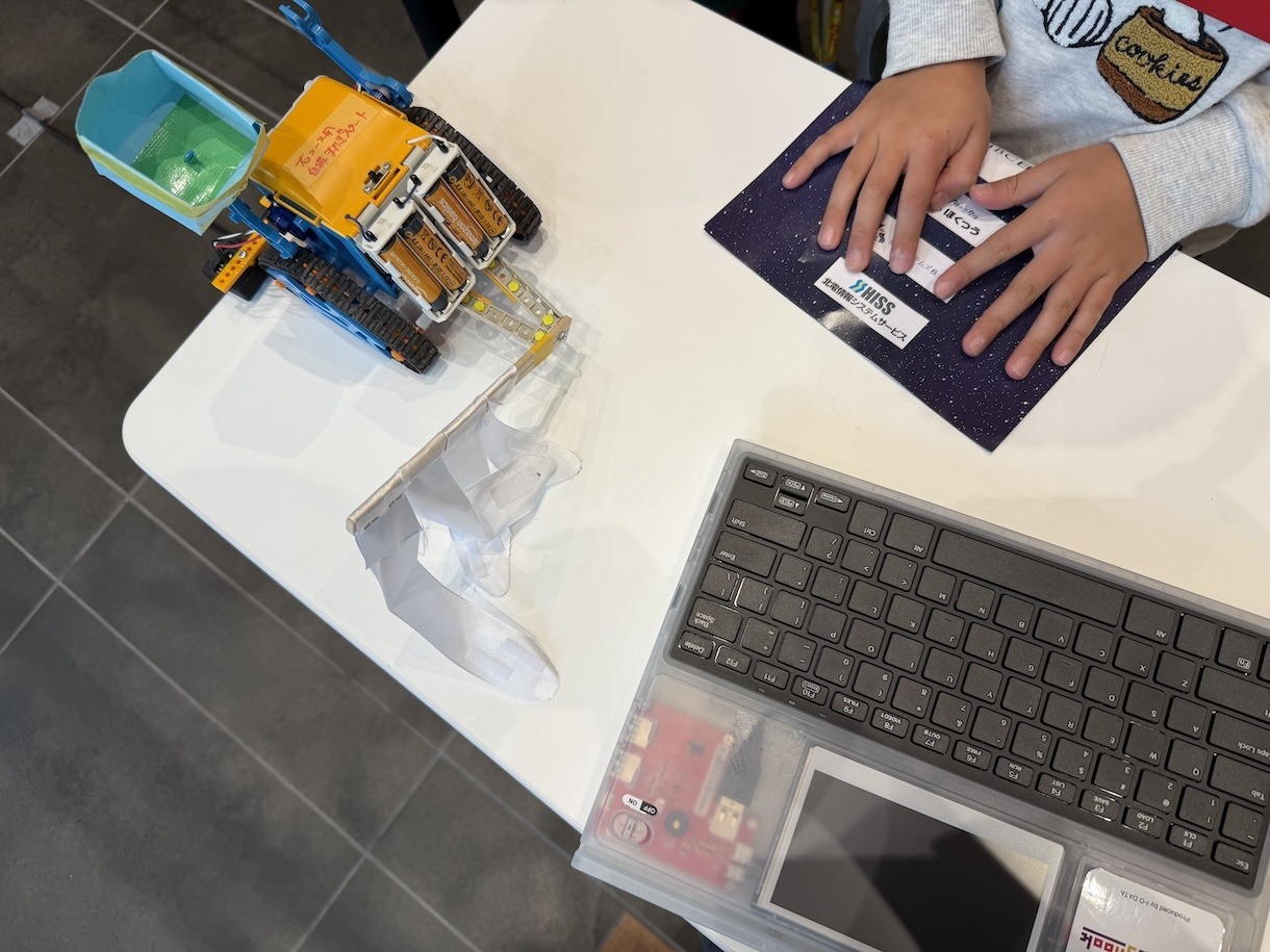 人通りの多い駅構内、ふらっと立ち寄ってくれたこどもにIchigoJamミニロボプログラミング講座。