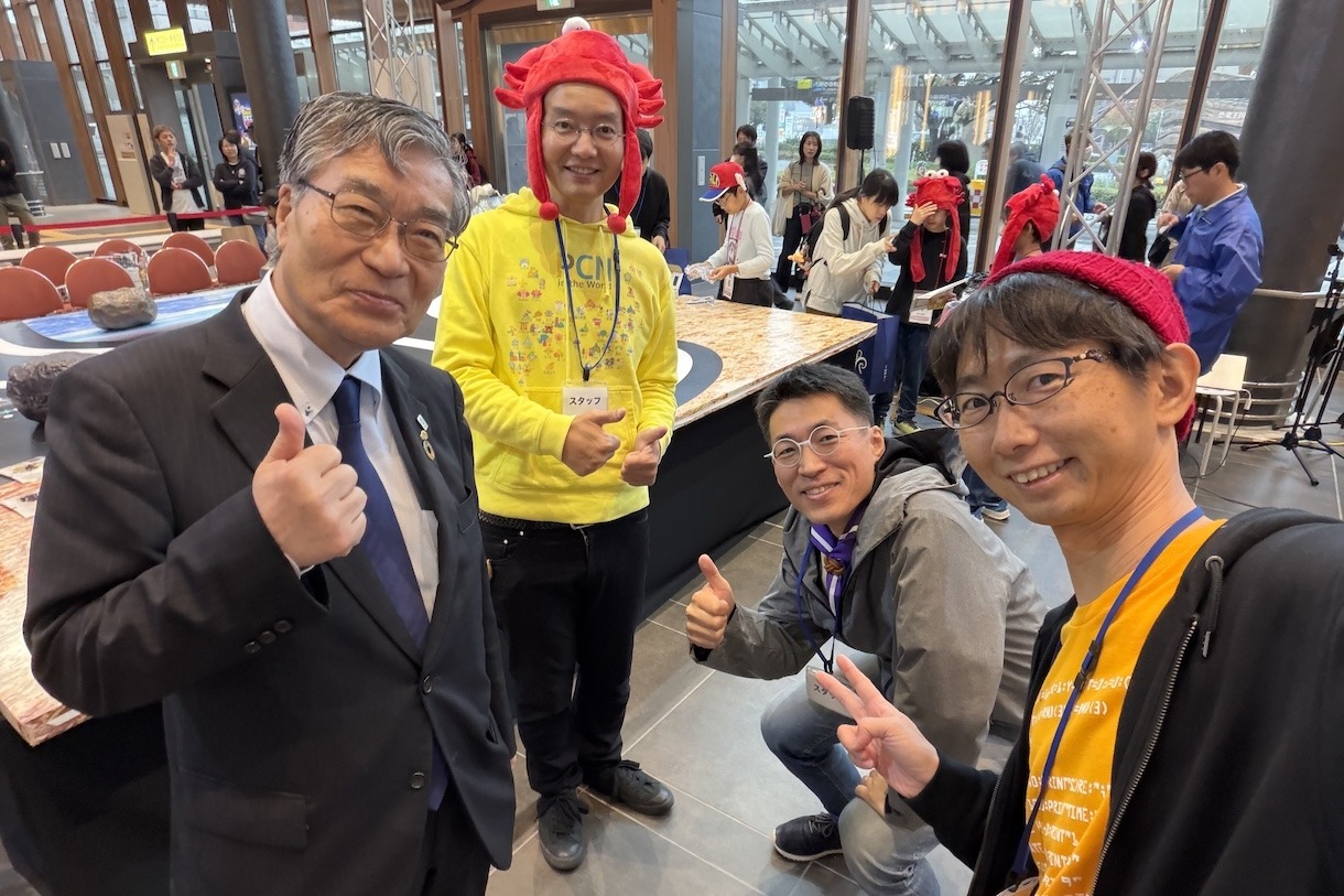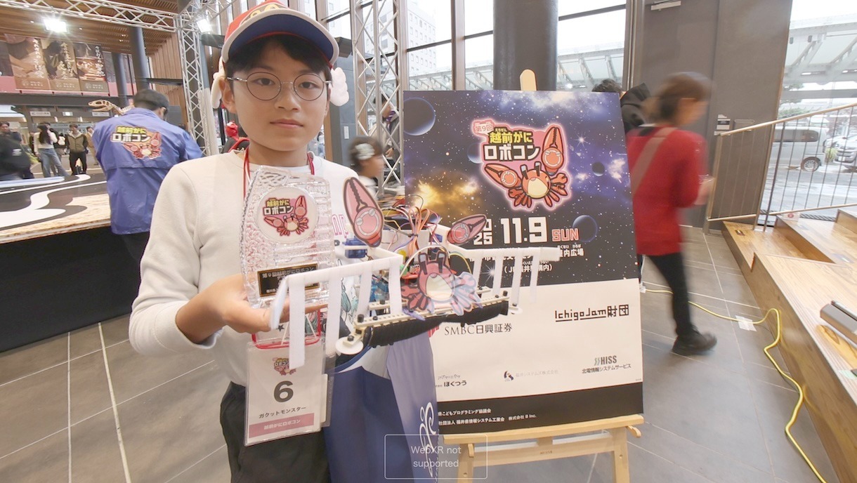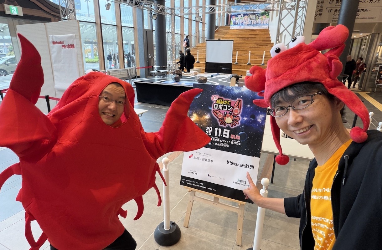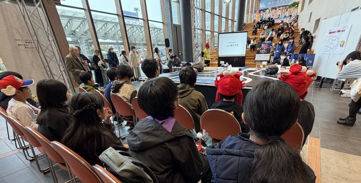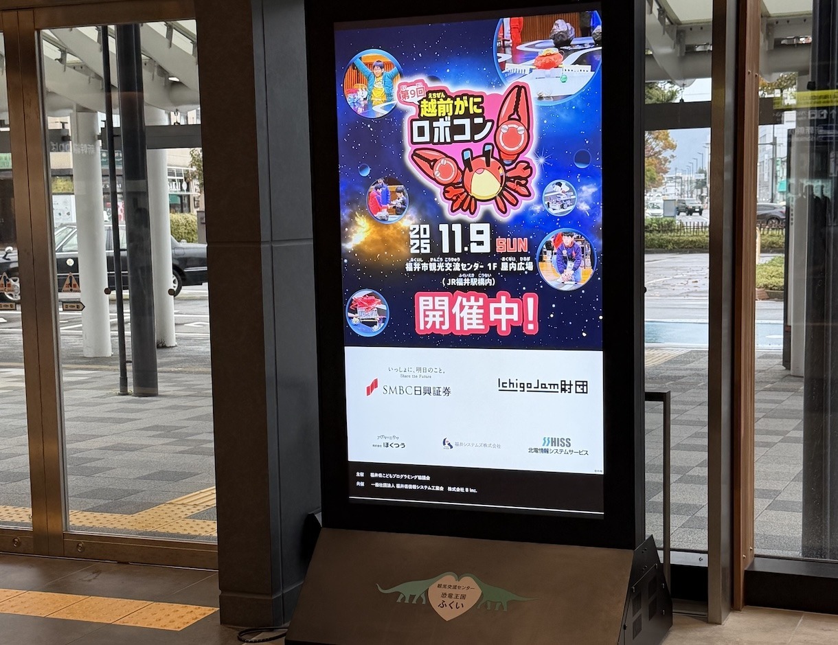 初の福井駅構内での開催、デジタルサイネージでも越前がにロボコンのPRしてくれててうれしい!