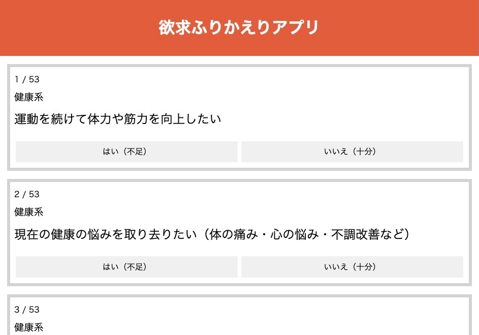 53の欲求・快楽リストをふりかえるアプリにしてみました。
