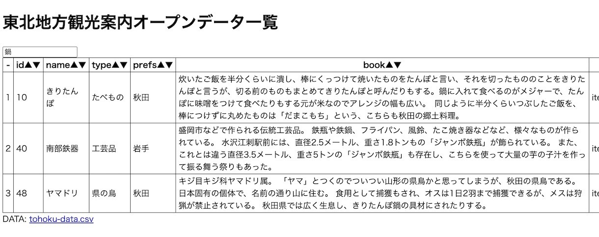 こちらは、そのCSVデータを表示する csv-viewer を使った一覧アプリ。
