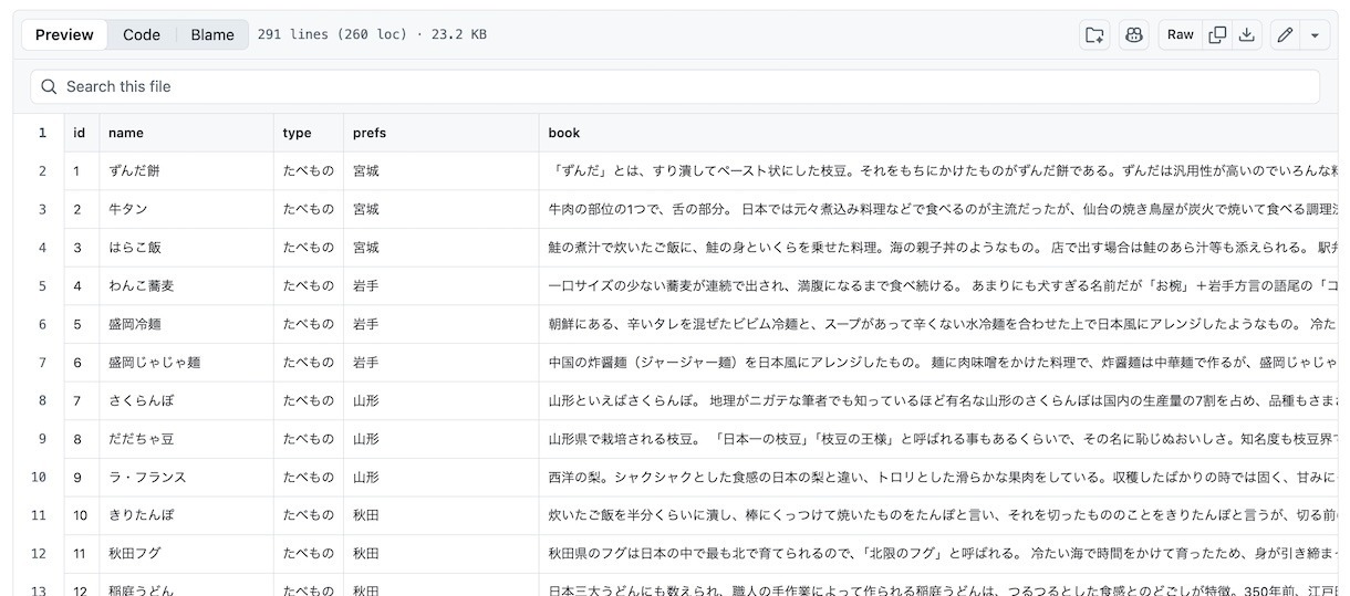 オリジナルで描いたかわいいイラストと、特産県データ付きのステキな紹介文がオープンデータ!