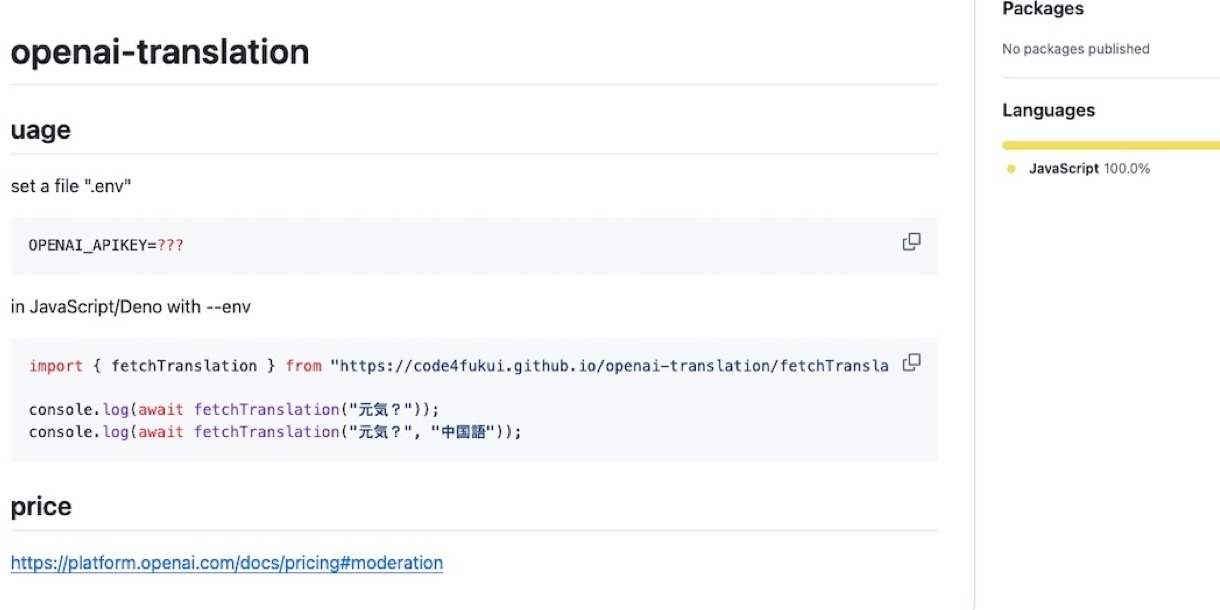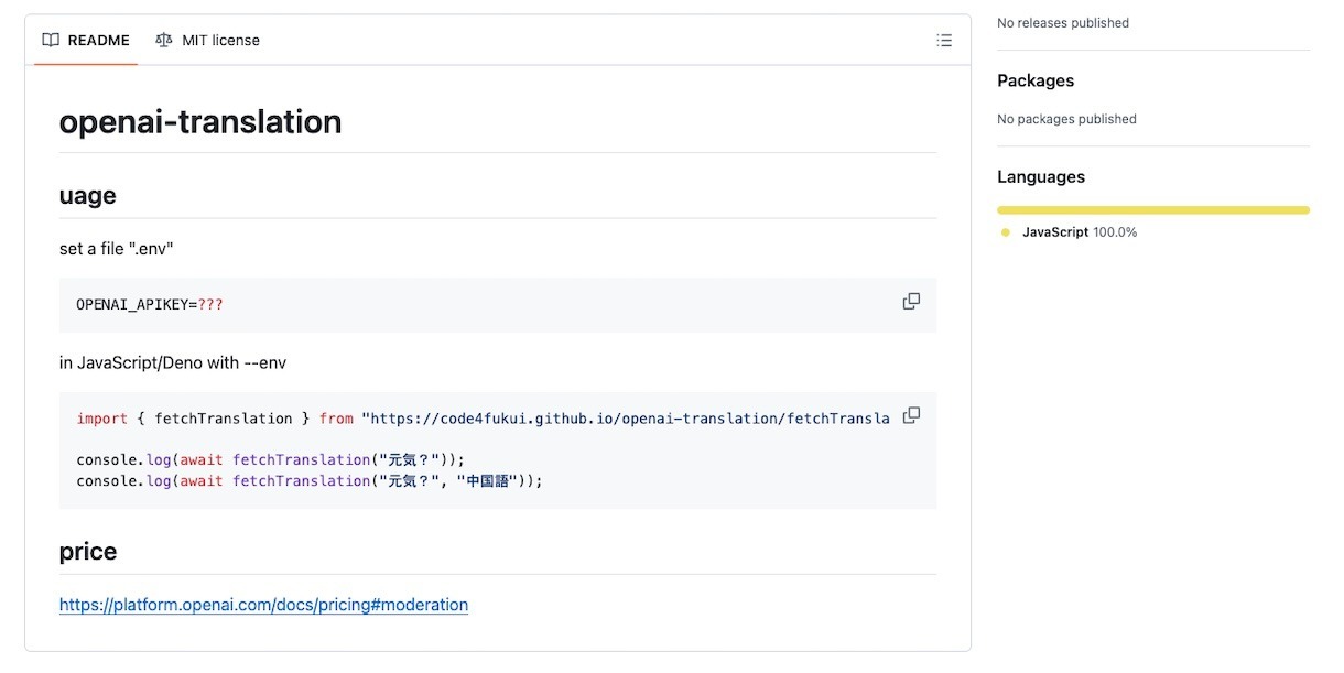 OpenAI社のAPIKEYを取得して、.env に設定し、Denoから呼び出すだけでOK!