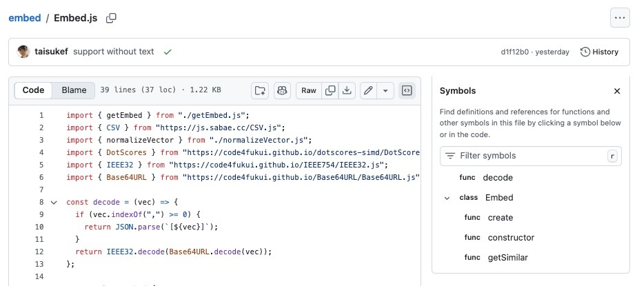 正規化したベクトル化した文章同士の比較は、内積(ドット)で計算できます。Wasm SIMDに32bit浮動小数を4つまとめて計算できて速くなるかも?