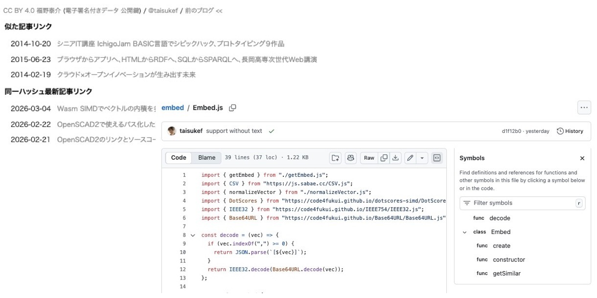 MacBookローカルでエンベディングを使ったRAGもうまくいったので、ちょっと効率化を目指してみます。多量といっても数百万までいかない場合は、WebGPUよりWasm SIMDが良いかもしれません。