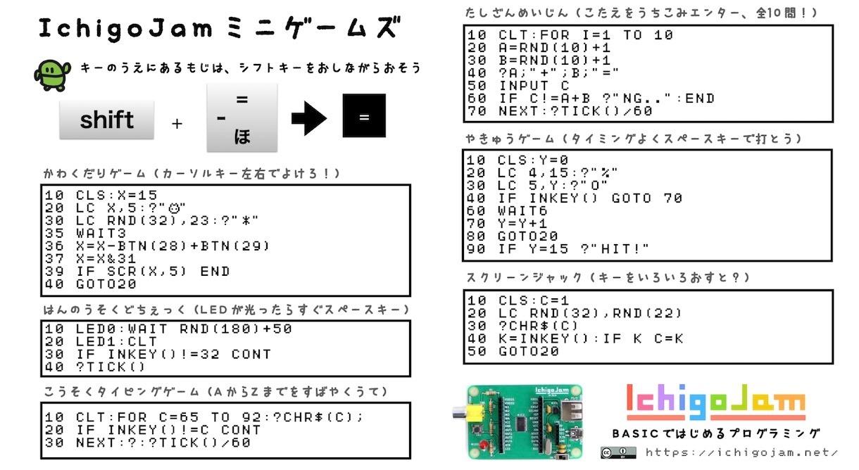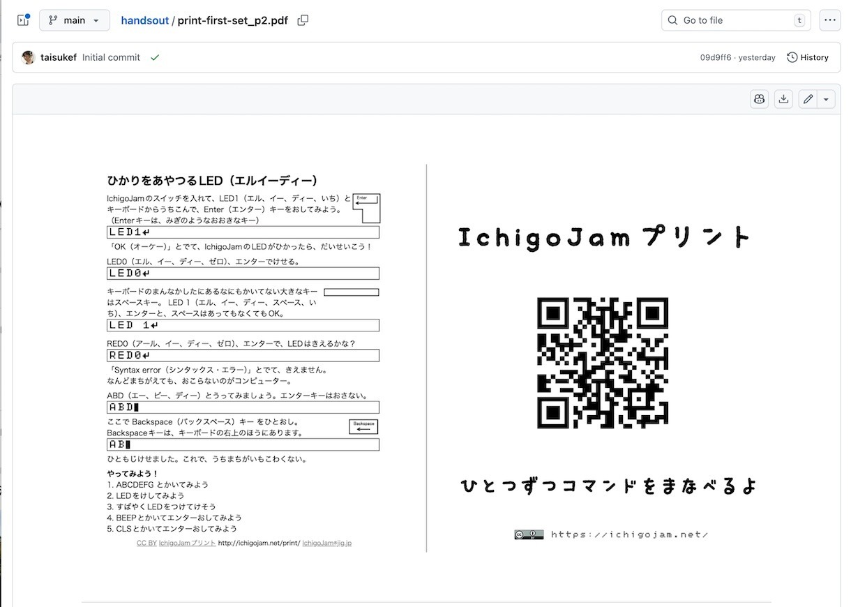 IchigoJamプリントから、基本セットを抜き出しPDF化した持ち帰り用資料もご活用ください!