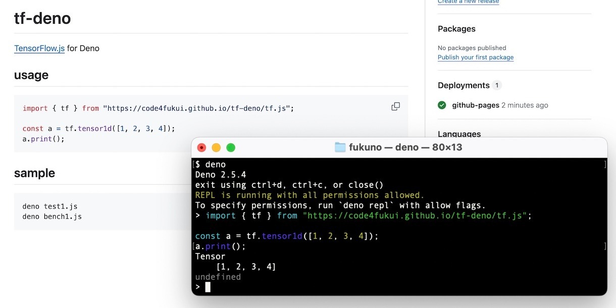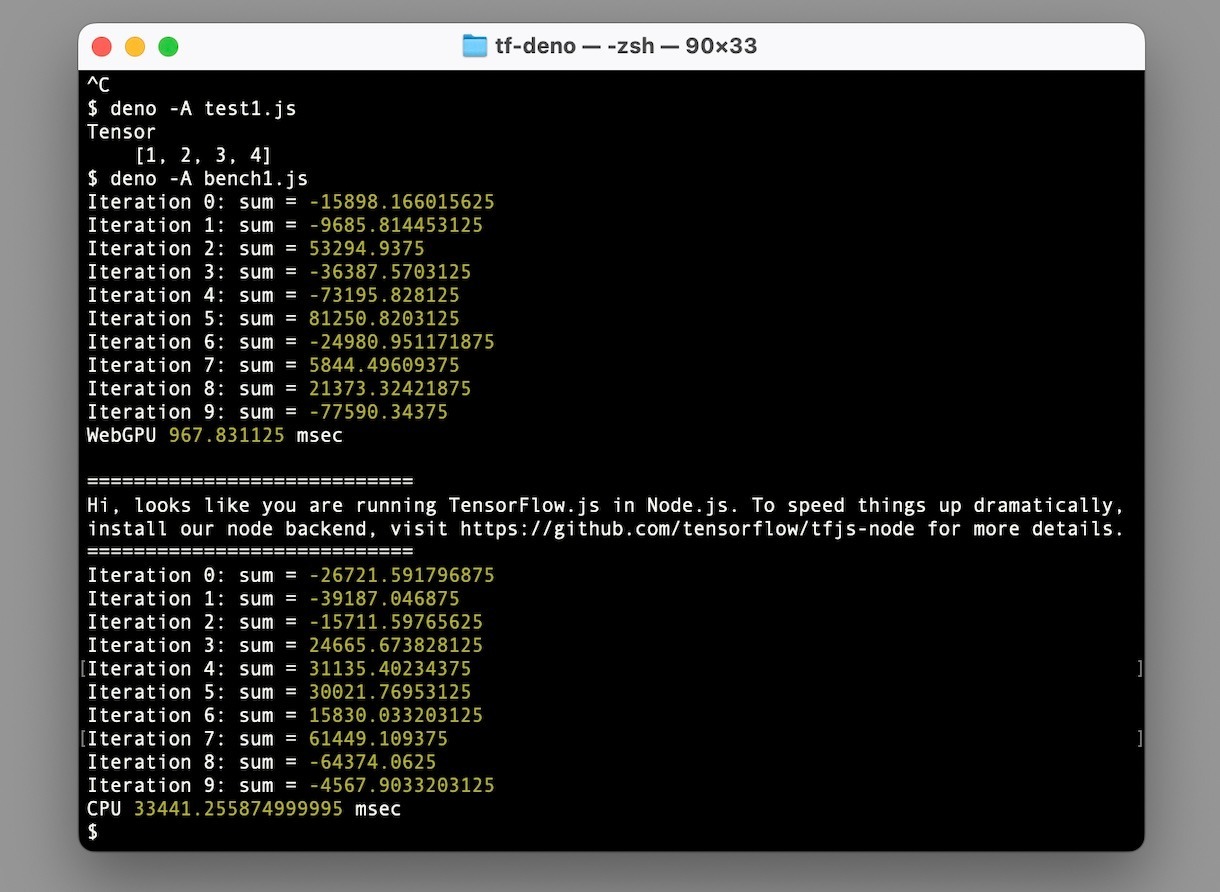 AIに欠かせないGPU。Web標準のAPI、WebGPUに対応しているJavaScriptのランタイム、DenoでオープンソースのGPUを使った行列計算ライブラリTensorFlow.jsを動かしてみました。