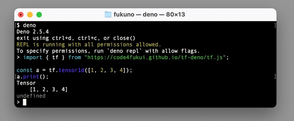 import { tf } from "https://code4fukui.github.io/tf-deno/tf.js"; const a = tf.tensor1d([1, 2, 3, 4]); a.print();