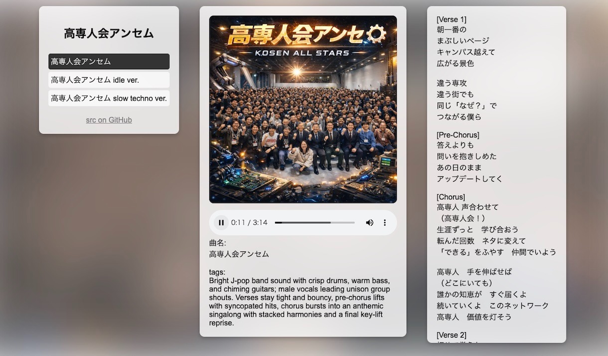 「ミニアルバム 高専人会アンセム」 src on GitHub