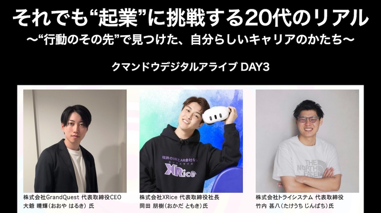クマンドウデジタルアライブ2025にて、「それでも"起業"に挑戦する20代のリアル」でモデレーター。